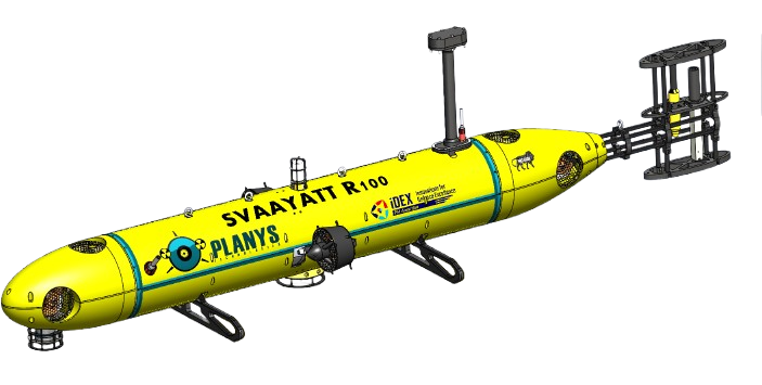 Planys’ Svaayatt is an indigenously built modern generation autonomous underwater vehicle (AUV) under design specifically for port & harbour survey, monitoring and oceanographic research applications designed for shallow water operations. Svaayatt can cruise up to 4 knots loaded with various sensors and payloads required for survey or monitoring applications. With an expandable endurance of 8 hours, it remains portable for operation in shallow waters. Equipped with modern wireless sensors Svaayatt can relay live data over a 2.5 Km range in air and 1 Km range underwater. AUV Svaayatt is India’s first commercial grade AUV for industrial and oceanographic research applications set for a launch soon.